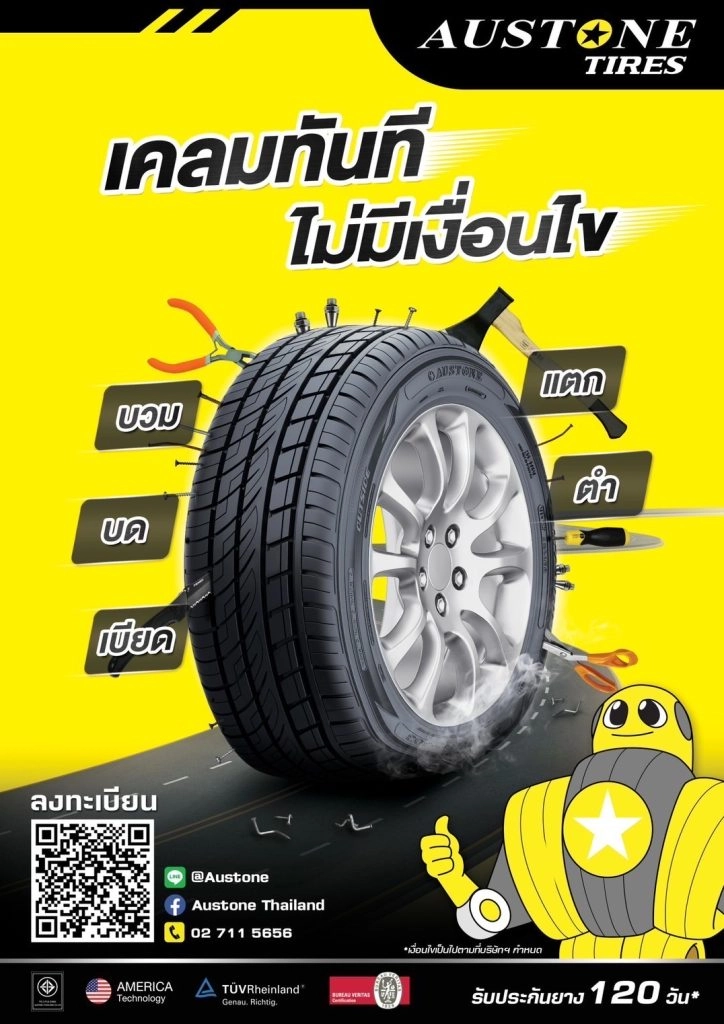 เงื่อนใขการรับประกันยาง ท่านสามารถสแกน คิวอาร์โค้ด เพื่อส่งรูปยางที่เกิดความเสียหายเพื่อให้บริษัทออสโตน ประเทศไทย