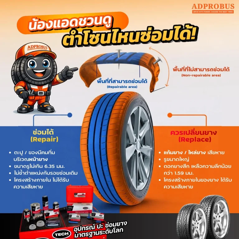 ข่าวสารตำโซนไหน “ซ่อมได้” หรือ “ควรเปลี่ยนยาง”น้องแอดชว… Read Moreตำโซนไหน “ซ่อมได้” หรือ “ควรเปลี่ยนยาง”
